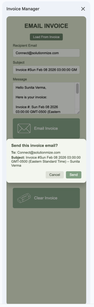 Yes. You can send invoices directly from the system without using any third-party tools.