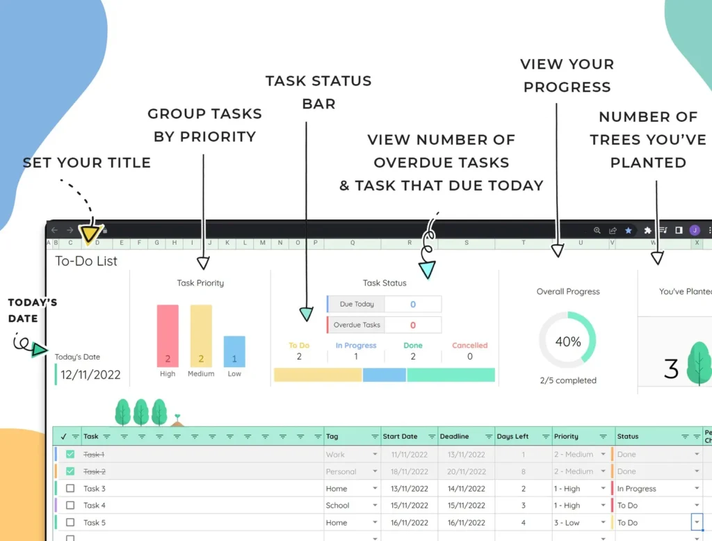Stay productive, build habits, and watch trees grow 🌱 as you complete tasks — with this fun & fully customizable Google Sheets To-Do List.